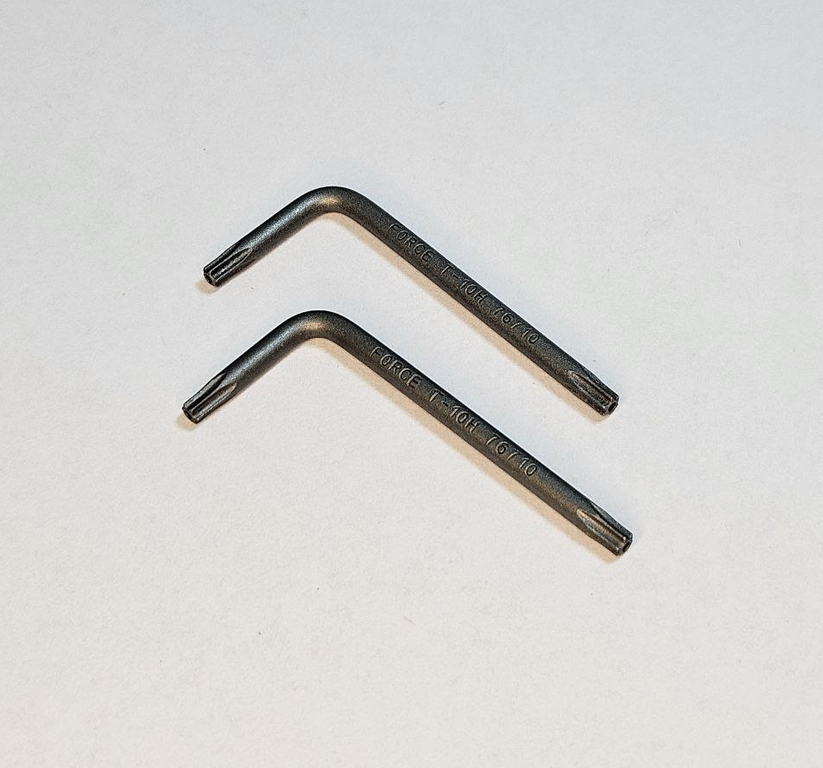 Два ключа для разбора инструмента Leatherman - Г-образные TORX T-10H с отверстием, 6-ти лучевая звезда. Подходит для Charge, Surge, Wave производства с 2013 г. НЕ ПОДХОДИТ ДЛЯ LEATHERMAN ВЫПУСКА ДО 2013 ГОДА с 5-ти лучевой звездой.